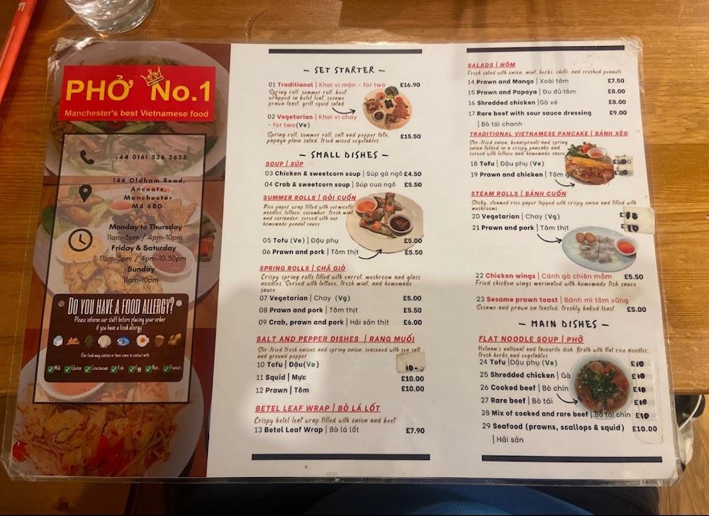 Located at 146 Oldham Rd, Pho No. 1 is nestled in the thriving Ancoats neighborhood of Manchester. This area, known for its eclectic mix of modern and historical vibes, complements the authenticity found in this restaurant. The welcoming vibe resonates within, drawing in families, groups, and solo diners alike. I encountered warm service from the staff, who are always eager to cater to dietary preferences. Ancoats, a tight-knit community, is also home to other culinary gems, but Pho No. 1 stands out with its commitment to quality and authenticity. Accessibility features like wheelchair-friendly seating and gender-neutral toilets enhance the welcoming feel. With easy street parking available, it invites both locals and tourists to explore delectable Vietnamese cuisine. The restaurant buzzes with life, especially during peak dining hours, creating a lively atmosphere that enhances your dining experience.